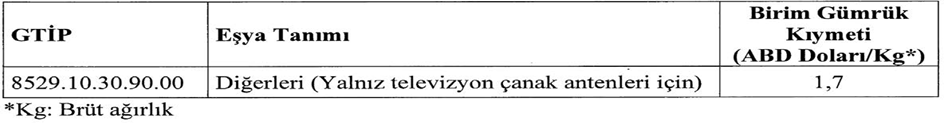 8529.10.30.90.00 gtip li Diğerleri (Yalnız televizyon çanak antenleri için) (- – – Harici radyo ve televizyon alıcı antenleri) ticari tanımlı eşyanın ithalatında gözetim uygulaması getirildi. (Yürürlük: 30/01/2026)