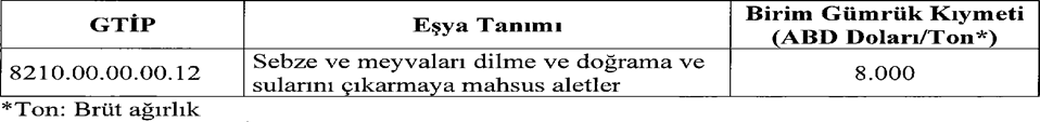 8210.00.00.00.12 gtip li Sebze ve meyvaları dilme ve doğrama ve sularını çıkarmaya mahsus aletler ticari tanımlı eşyanın ithalatında gözetim uygulaması getirildi. (Yürürlük 30/01/2026)