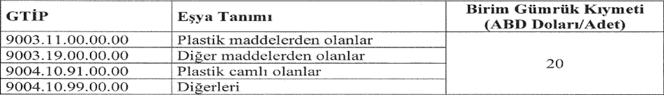 Gözlüklere veya benzeri eşyaya ait çerçeveler ile optik tarzda işlenmiş camlı olmayan güneş gözlükleri ticari tanımlı eşyanın ithalatında gözetim uygulaması getirilmiştir. (Yürürlük: 30/01/2026)