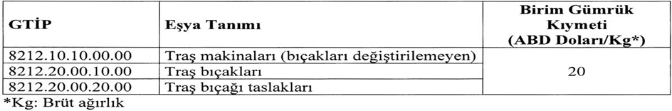 Traş makinaları (bıçağı değiştirilemeyen), Traş Bıçakları ve Traş Bıçağı Taslakları ticari tanımlı eşyaların ithalatında gözetim uygulaması getirildi. (Yürürlük : 30/01/2026)