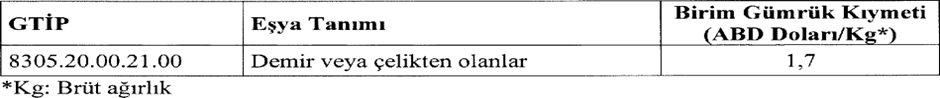 8305.20.00.21.00 gtip li Demir ve Çelikten olanlar (- Şerit halinde zımba telleri: — – Döşemecilik ve ambalaj işlerinde kullanılanlar: – – – Demir veya çelikten olanlar) ticari tanımlı eşyanın ithalatında gözetim uygulaması getirildi. (Yürürlük: 30/01/2026)