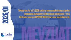 Türkiye den Fas a 1/1/2026 tarihi ve sonrasındaki ihracat işlemleri kapsamında düzenlenen EUR.1 dolaşım belgelerinin 7 no.lu Gözlemler hanesine REVISED RULES ibaresinin kaydedilmesi hk. Türkiye–Fas